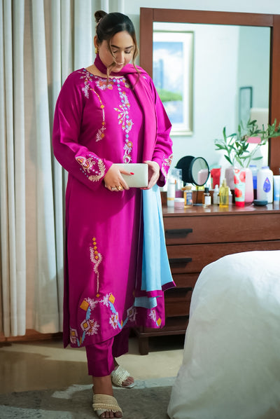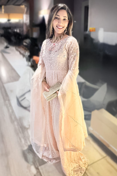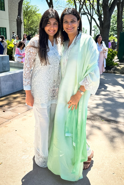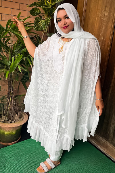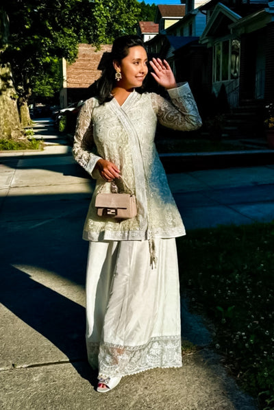 Brighten up your summer look with our gorgeous ensemble, made up of a light fabric embellished with lace, intricate details, and thread work, making this piece a perfect summer classic daytime look.